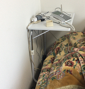 今回、母のベッドでサイドデスクが必要となり、取り急ぎ、この折りたたみデスクを提供しました。