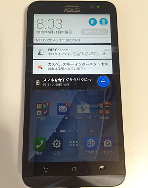 iPhone に慣れているので、ZenFone 2 でも、しばらく「システム通知」の表示は、必ず画面の上端から下にスワイプ操作して表示させていました。
