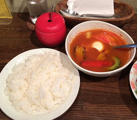 確かにかなり辛いのですが、トマト、ニンジン、イエローピーマン、ゴーヤなどの野菜の滋味が感じられておいしかったです。