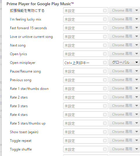 すると「ミニプレーヤー」は非アクティブでも使えるショートカットキーを設定できることを知りました。