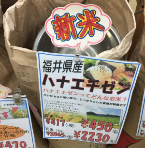 そこでお店にあった29年新米から福井産「ハナエチゼン」を買ってみることにしました。