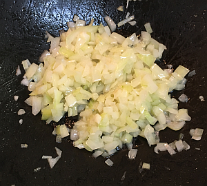 そして玉ねぎを「しんなり」するまで炒める、というのもルーチンですね。