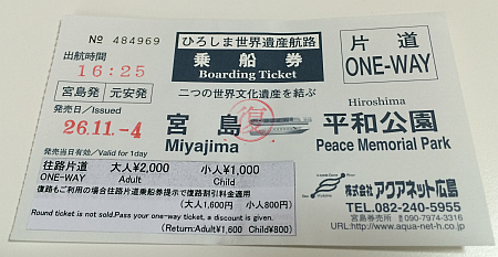 今回、宮島への往復には『二つの世界文化遺産を結ぶ』が謳い文句の「ひろしま世界遺産航路」を利用しました。