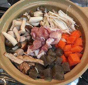 とりあえず、材料はこんな感じ。「ごぼう」と「しめじ」は初挑戦です。