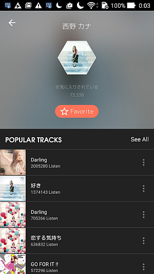それが現在、私の環境で GPM で「西野カナ」のページで彼女の主要なアルバムと曲が表示され、再生できています(2015/10/5 01:00現在)。