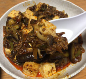 ということで「ひき肉」も買って、豆腐、ネギ、ナスと揃えて準備完了です。