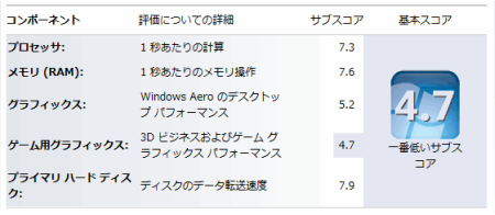 さらに交換前に紹介した以下の方法で「Windows エクスペリエンス インデックス」を確認しました。