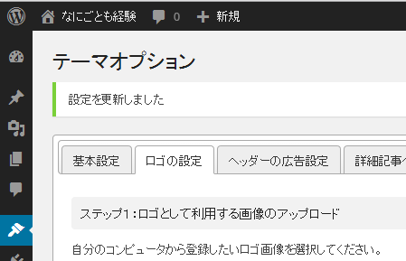 このお手製のロゴを WordPressテーマ「BlogPress (TCD010)」の「テーマオプション」で「ロゴの設定」します。