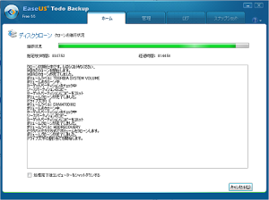 クローン作成が開始されますが、時間はパソコンの能力、コピーされる容量によっても違います。
