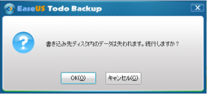「書き込み先ディスク内のデータは失われます。続行しますか?」で「OK」をクリック。