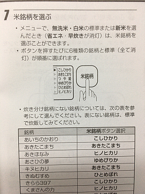『表にない銘柄は、標準で炊飯してみてください』とのことなので、まずは「標準」で炊きましょう。